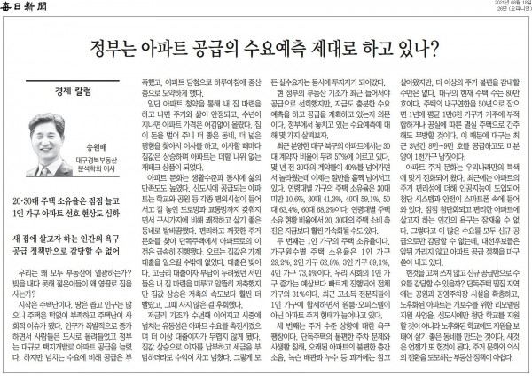 송원배 대표 정부는 아파트 공급의 수요예측 제대로 하고 있나